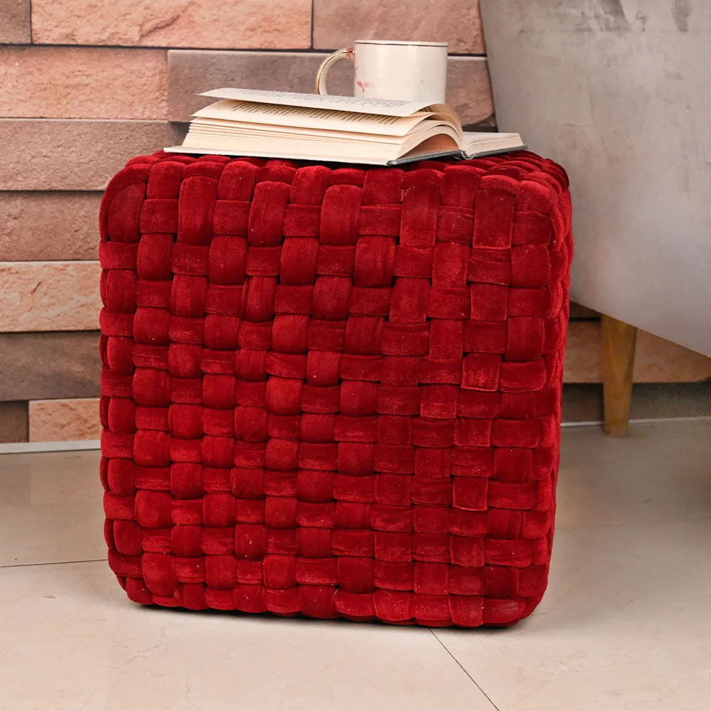 Modern Corner Cotton Velvet Material Pouffe Stool For Living Room, Set of 1