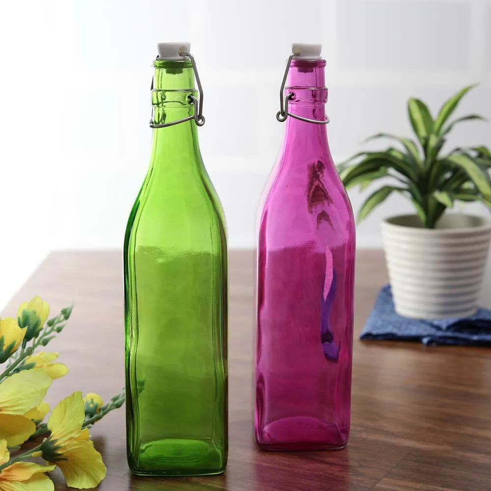 | Product Dimension: Height 28cm, diameter 3cm | Capacity- 1 Liter | Comes in Green & Pink Color | Crafted from high quality glass with Inox bottle cap | A Perfect Gift for Family and Friends | Temperature resistant and durable glass | Package Content: Set of 2 bottles | Proudly Made in India