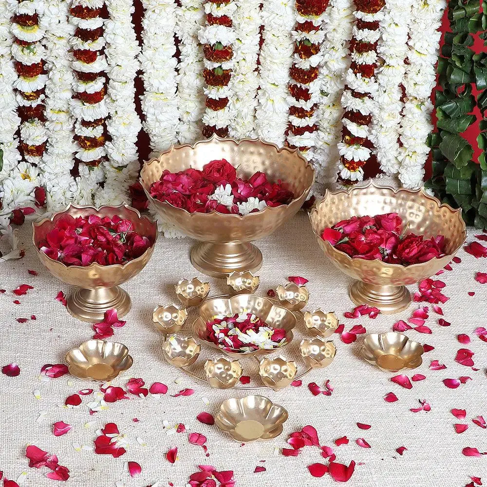 Traditional Metallic Urli with Tealight Holder for Home (Set of 7)
